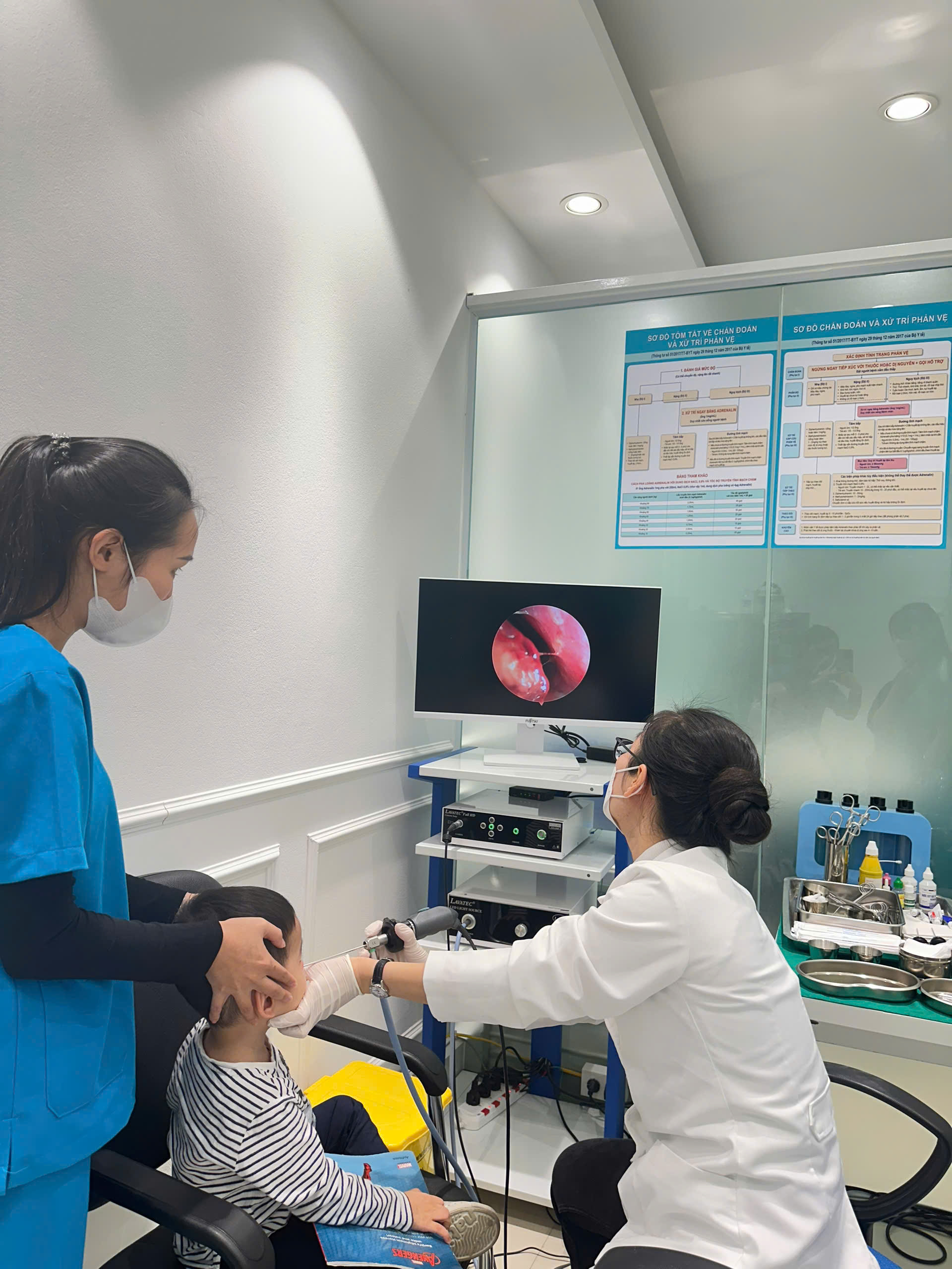 Không gian thân thiện, trang thiết bị hiện đại cùng đội ngũ nhân viên y tế tận tình giúp cha mẹ yên tâm hơn khi chăm sóc sức khỏe mũi xoang cho con.